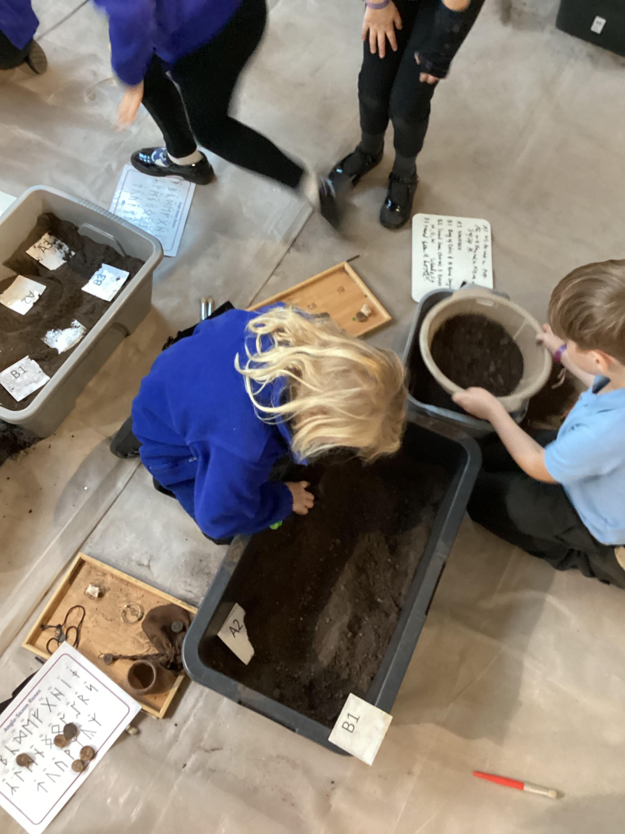 Today we had a sneak peak into the lives of the Anglo Saxons! We went to visit the Longshed in Woodbridge. The children created their own coins, brooches, ships and even completed an archaeological dig of their own!