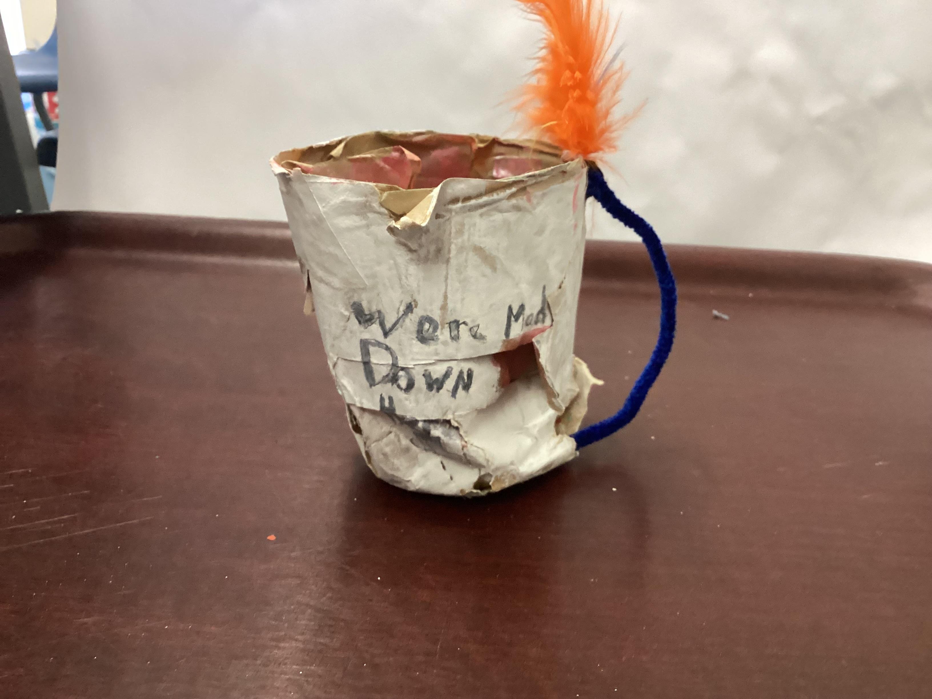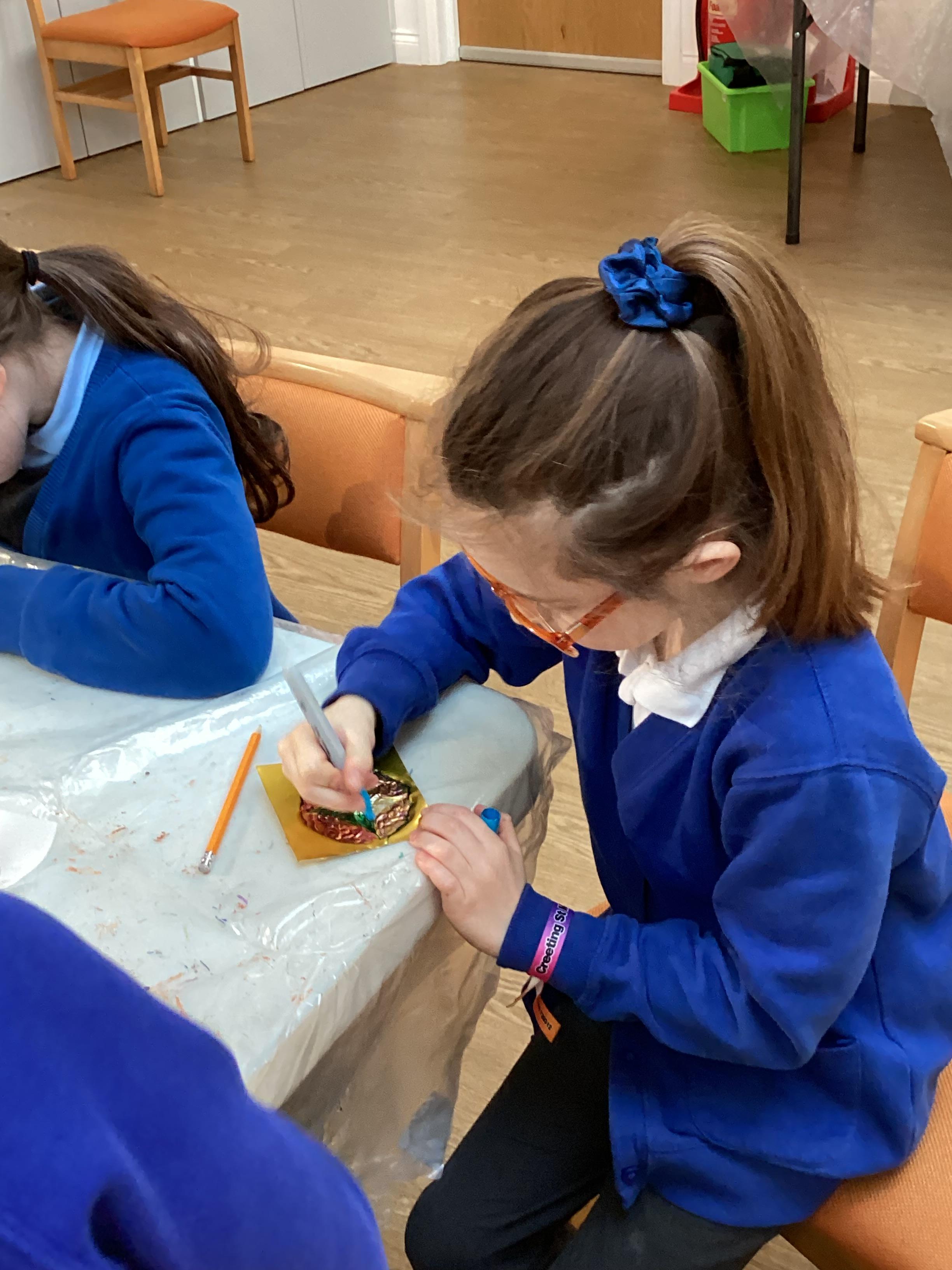 This week in Chestnut we have made our own art props for the school play! We made tea cups inspired by Alice in Wonderland's Mad Hatter tea party scene using brown gummed paper to cast a mould.