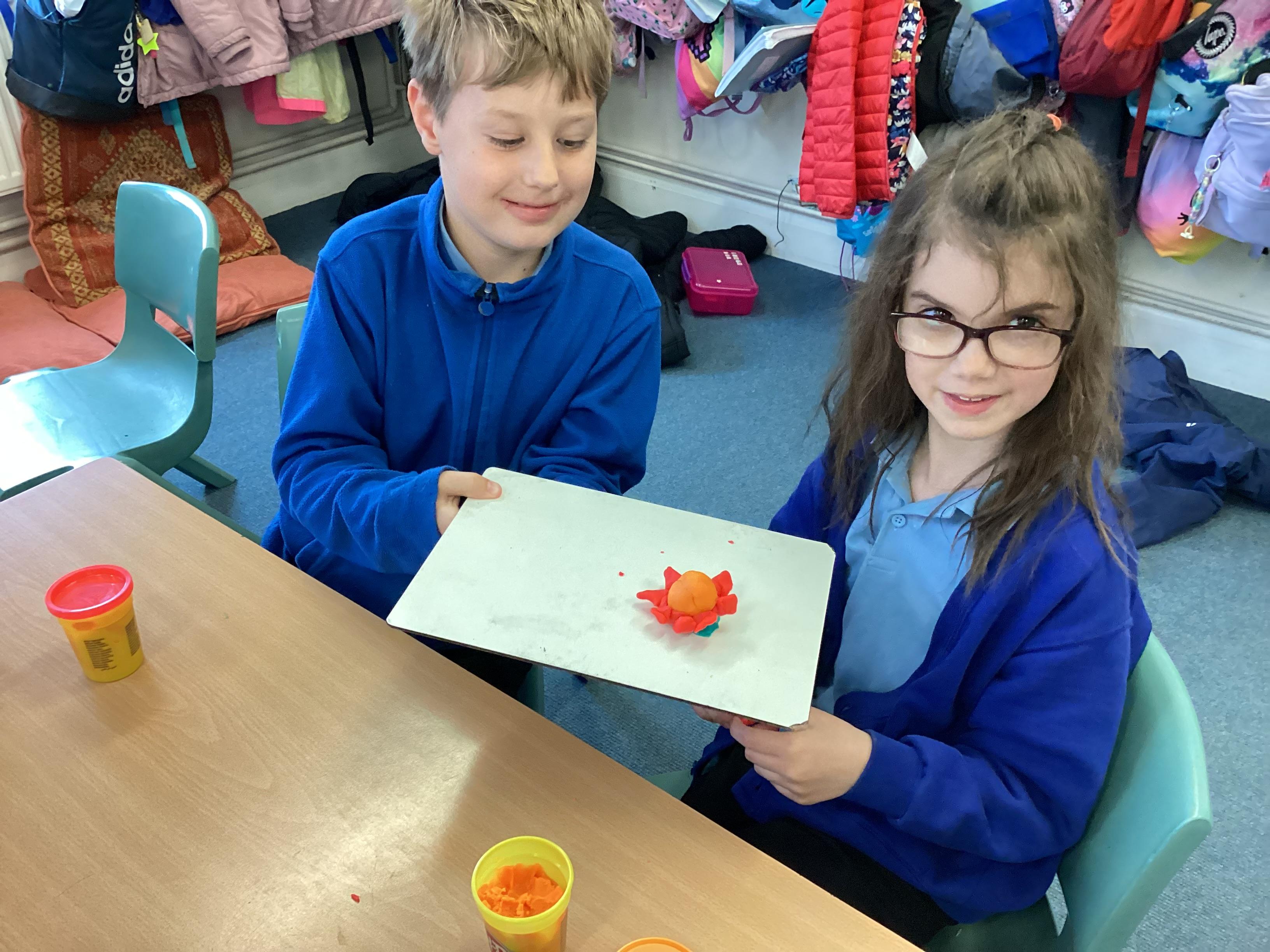 Our science topic this week was on plants. We created detailed observations of celery sticks in food colouring and setting up a fair test we have been able to develop a deeper understanding of the different parts of a plant and how to care for them. The children have been busy today creating 3d models of these different parts of a plant using play dough. Here are some examples!